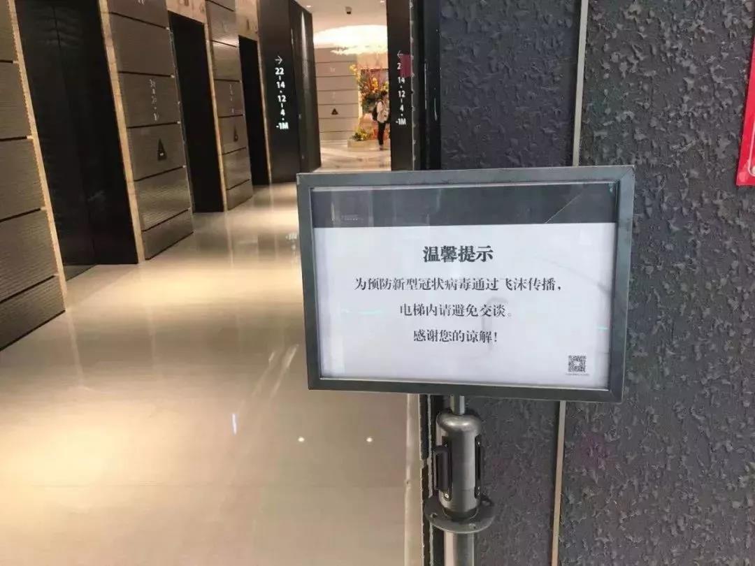 ▲为预防新型冠状病毒通过飞沫传播,广州国际金融中心电梯间有避免交谈的提示
