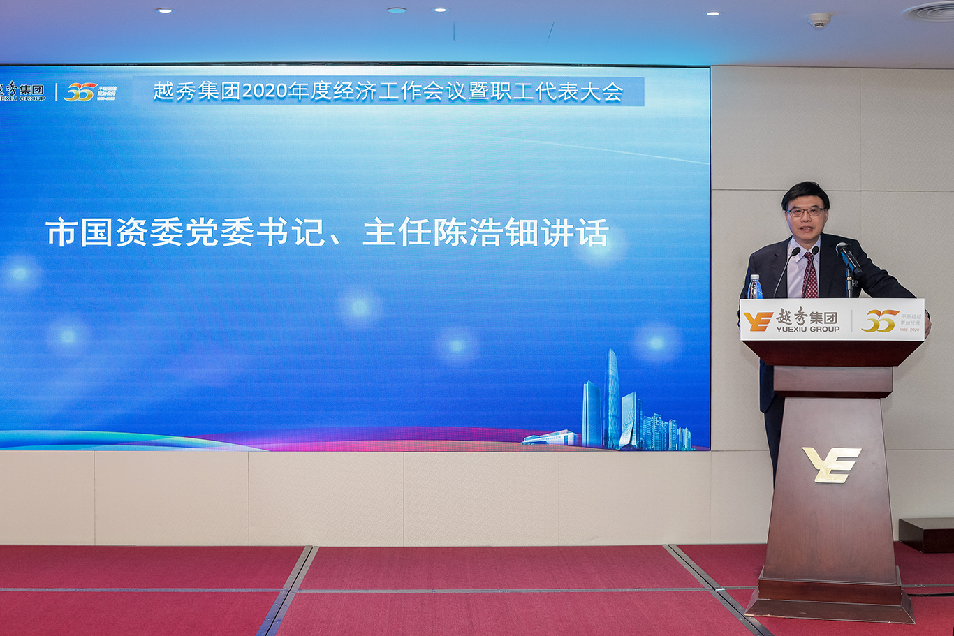 2月24日下午,越秀集团2020年度经济工作会议暨职工代表大会在国金中心58楼会议室举行。市国资委党委书记、主任陈浩钿应邀出席会议并讲话;越秀集团党委书记、董事长张招兴作了《坚定信心战胜困难,优化结构助力发展》的讲话;越秀集团党委副书记、副董事长、总经理叶珊瑚代表集团经营班子作了题为《强化管理促发展