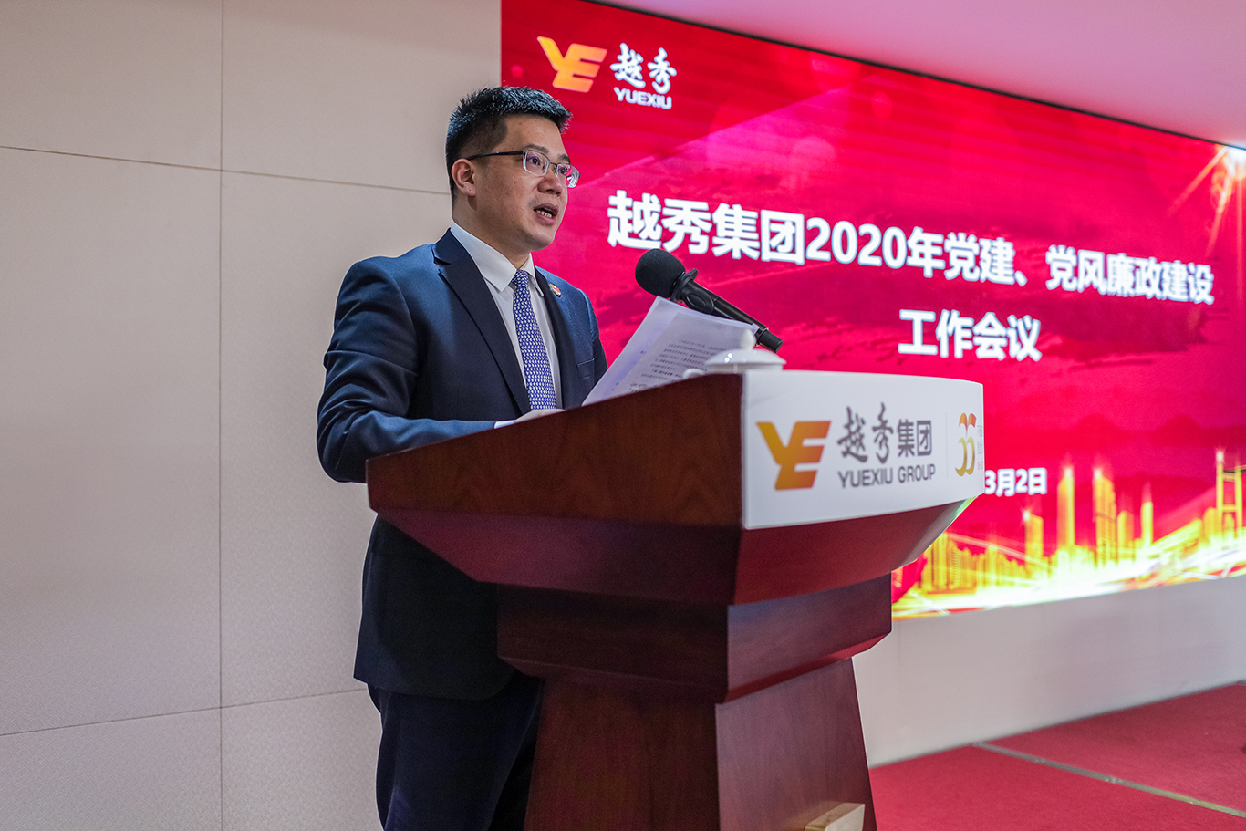 3月2日,越秀集团在国金中心58楼党员教育中心召开2020年党建、党风廉政建设工作会议。集团党委书记、董事长张招兴出席会议并作了《一以贯之推动全面从严治党与全面从严治企深度融合,以高质量党的建设促进集团高质量发展》的讲话,集团党委副书记、副董事长、总经理叶珊瑚主持会议。