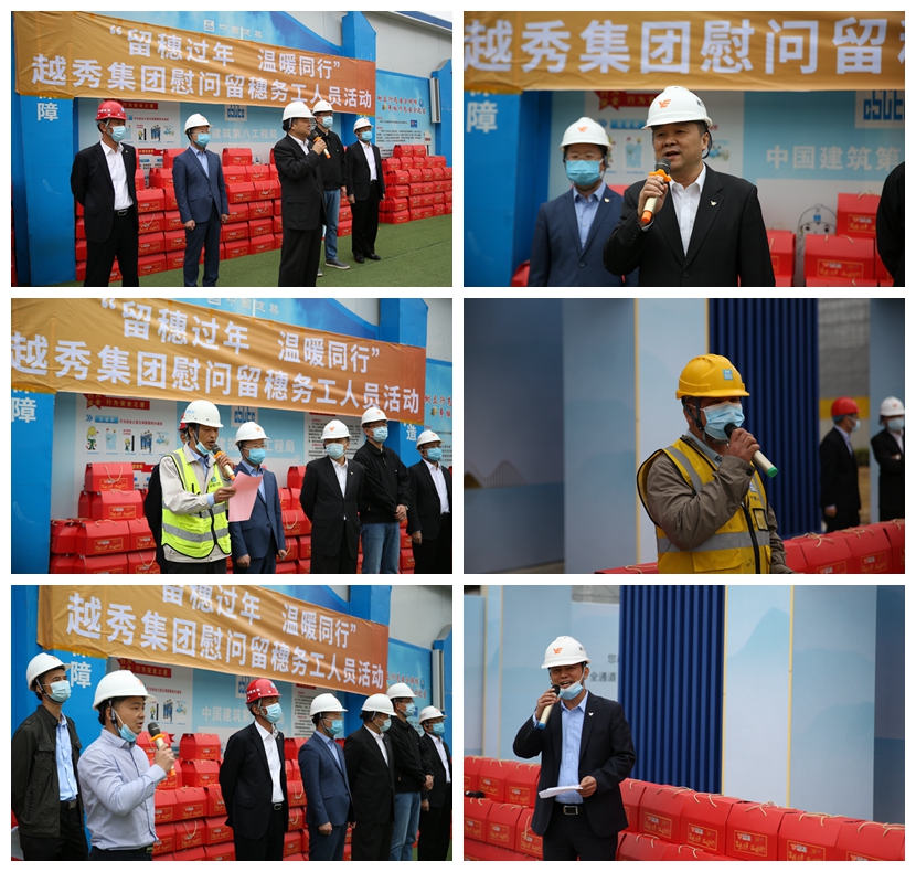 张招兴董事长详细了解工程进展、检查施工安全管理情况,向留穗施工人员致以新春的祝福,并送上集团精心准备的新年礼包。张董指出,广大施工人员坚决响应政府号召留穗过年,保证项目进度,令人敬佩。越秀集团和相关单位将做好留穗施工人员的生活服务保障,安排好节日期间的生活,切实做到暖心、舒心,让大家在广州过一个特殊而又温暖的春节。施工单位要强化安全生产责任意识,严格落实工地防疫措施,做好应急值守,确保施工安全和工程质量。