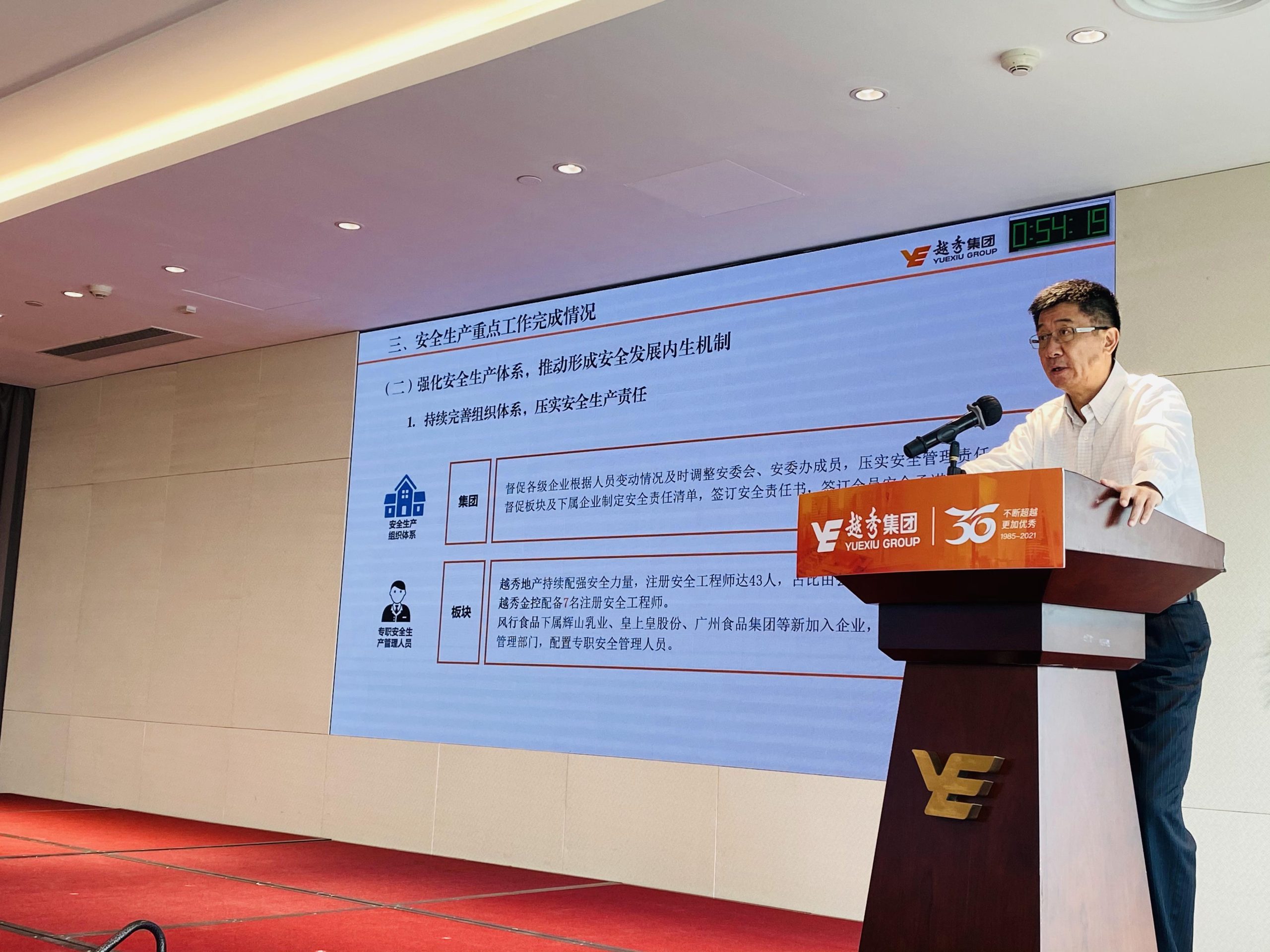 7月30日下午,越秀集团2021年中期安全工作会议在国金中心58楼大会议室召开。叶珊瑚总经理,谭思马副总经理,贺玉平总法律顾问,陈静首席财务官,李红首席审计官,曾昀工会主席,集团安委会成员、内保工作领导小组成员,板块安全生产直接责任人、安全管理部门负责人,以及板块下属重点企业安全生产直接责任人、安全管理部门负责人等共80人现场参加会议。