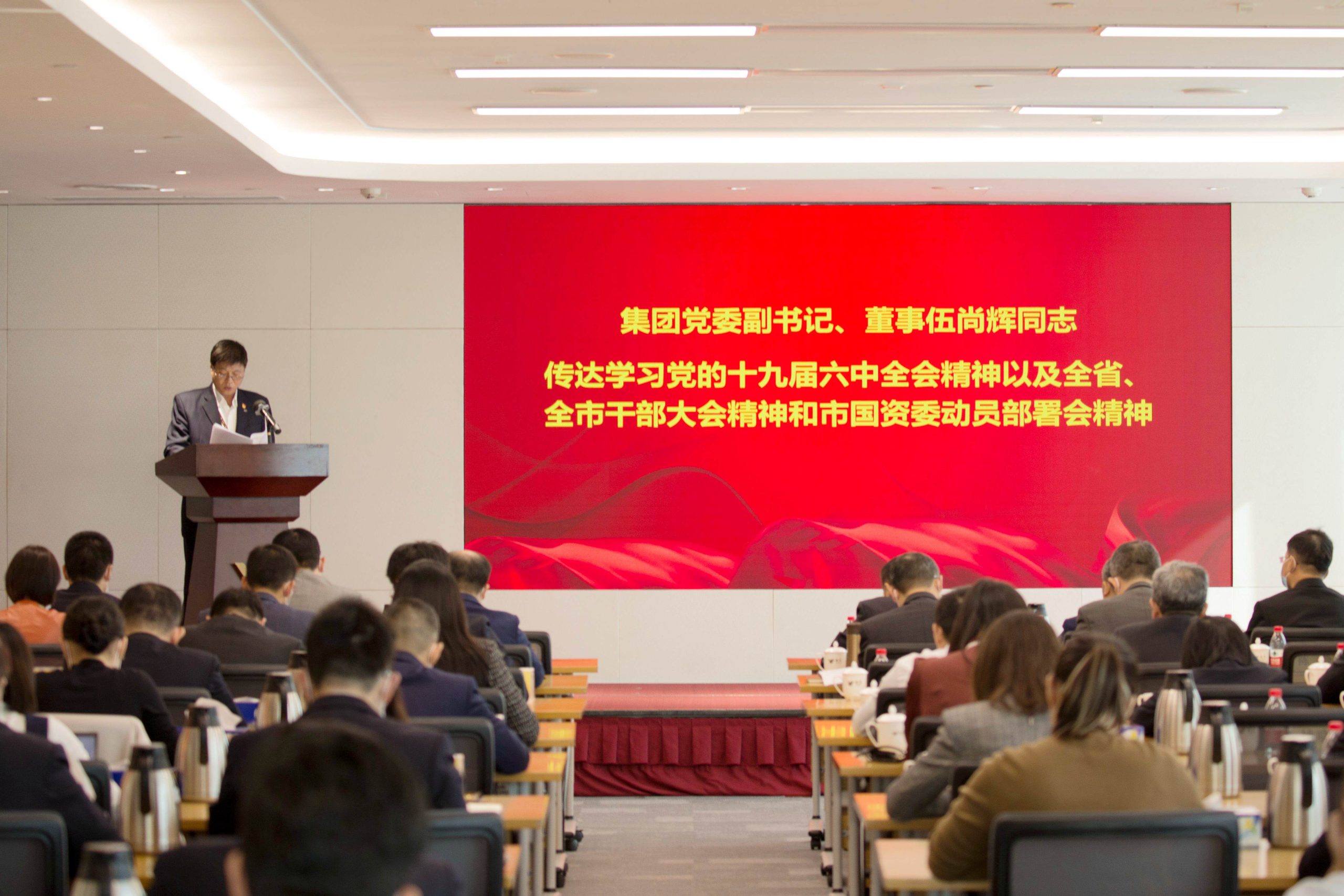 会上,集团党委副书记、董事伍尚辉传达了党的十九届六中全会精神以及全省、全市干部大会精神和市国资委动员部署会精神。